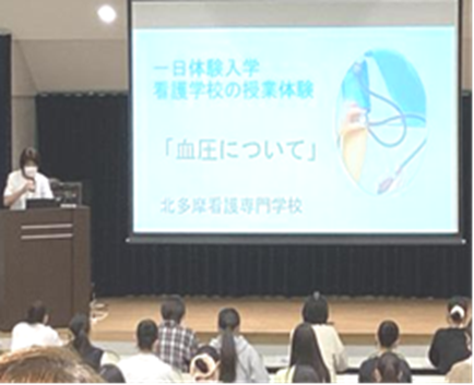 ○一日体験入学は、模擬授業や看護体験を通じて「看護の楽しさ」に触れ、看護への興味関心を高めることを目的としています。