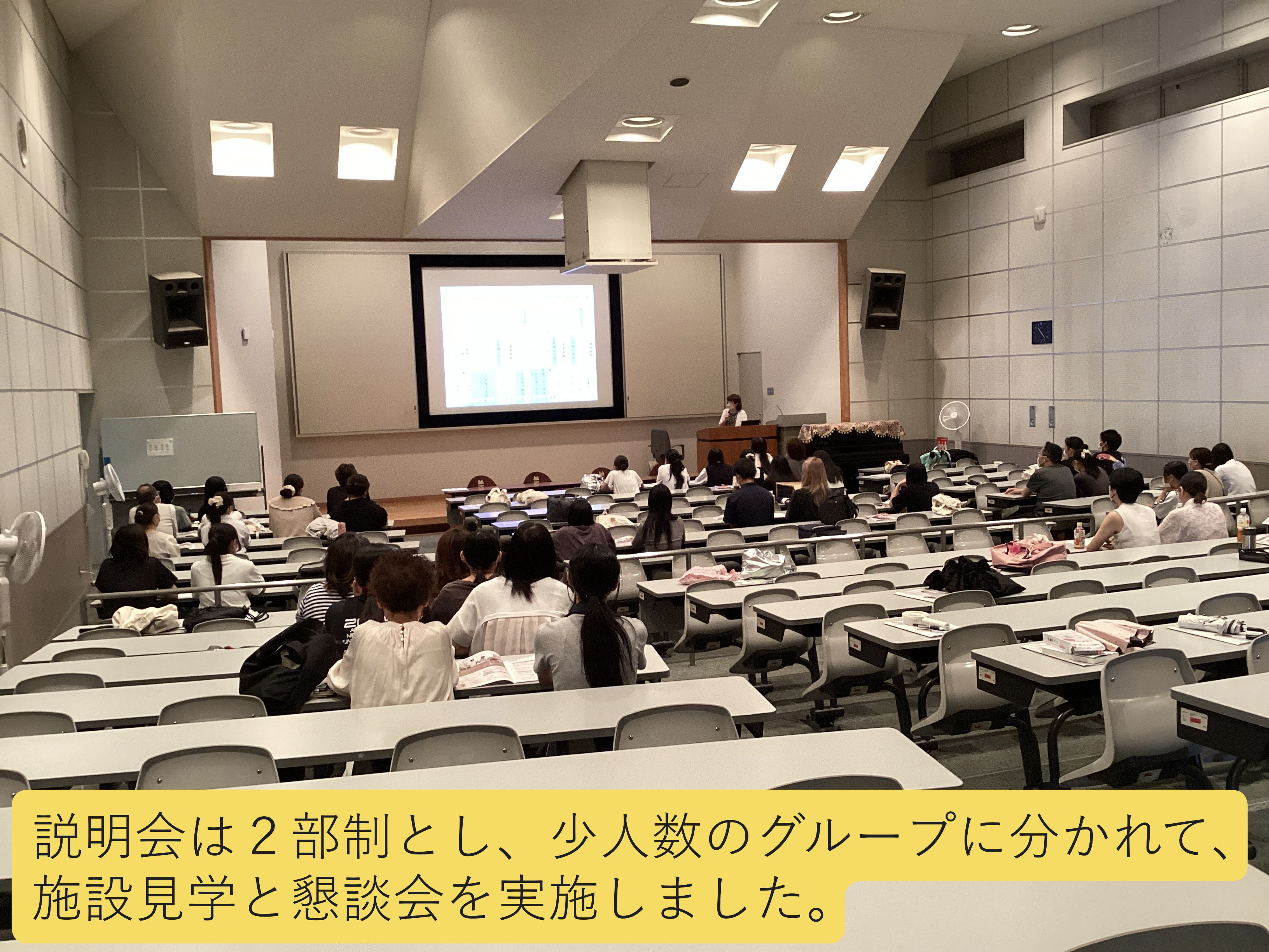 入試等含めた学校概要の説明では、「入学後の学校生活や入試などイメージが付いた」「資料が分かりやすく聞きやすかった」などの感想を頂きました。また、当校の学生が案内する施設見学と懇談会では「実習室が興味深く看護師に近づいたような気持ちになれて嬉しかった」「気さくに話しかけて下さりとても良い雰囲気だと感じた」「受験対策など具体的に丁寧に教えて頂いた」などの感想を頂きました。最後には、「見学前より看護師になりたい意思が高まりました」というお言葉も頂き、私たちにとってもとても嬉しく励みになりました。