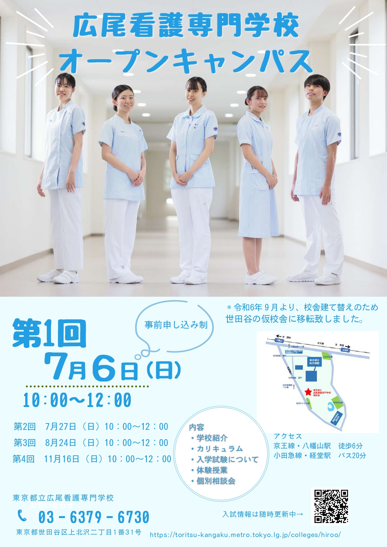 広尾看護専門学校では以下のとおり学校説明会を開催します。