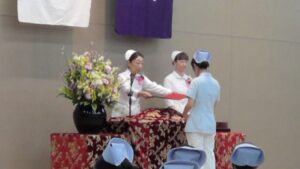 卒業生代表の答辞では、在学中に支え合いながら学んだ日々への感謝と、看護の道へ進む決意が述べられました。答辞の途中で涙ぐむ場面も見られ、会場は温かな空気に包まれました。今年度は、卒業生と在校生それぞれが別れの歌を合唱し、互いの歩みをたたえ合う歌声が響き、節目の一日を彩りました。