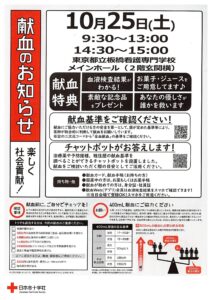 ☆プチ健康チェック、チャリティバザー、包帯巻き体験や応急処置の紹介、模擬店など