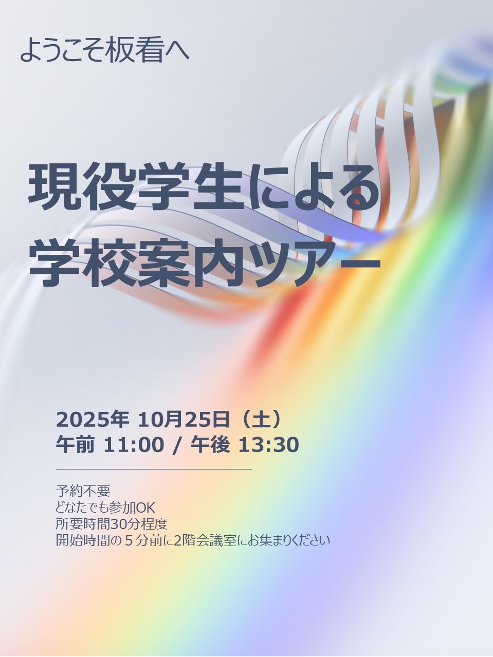 10月25日(土曜日)の銀杏祭にて学校案内ツアーを行います。