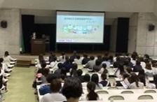 <学校の説明 講堂の様子> <模擬授業> <学生PR>