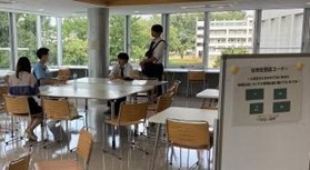 懇談コーナーは、2階の学生ホールで開催しました。大きなガラス窓が設けられた明るく開放感のある空間で、参加者も気軽に入室できる雰囲気でした。質問内容は、受験対策や学校生活に関するものが多くありました。
